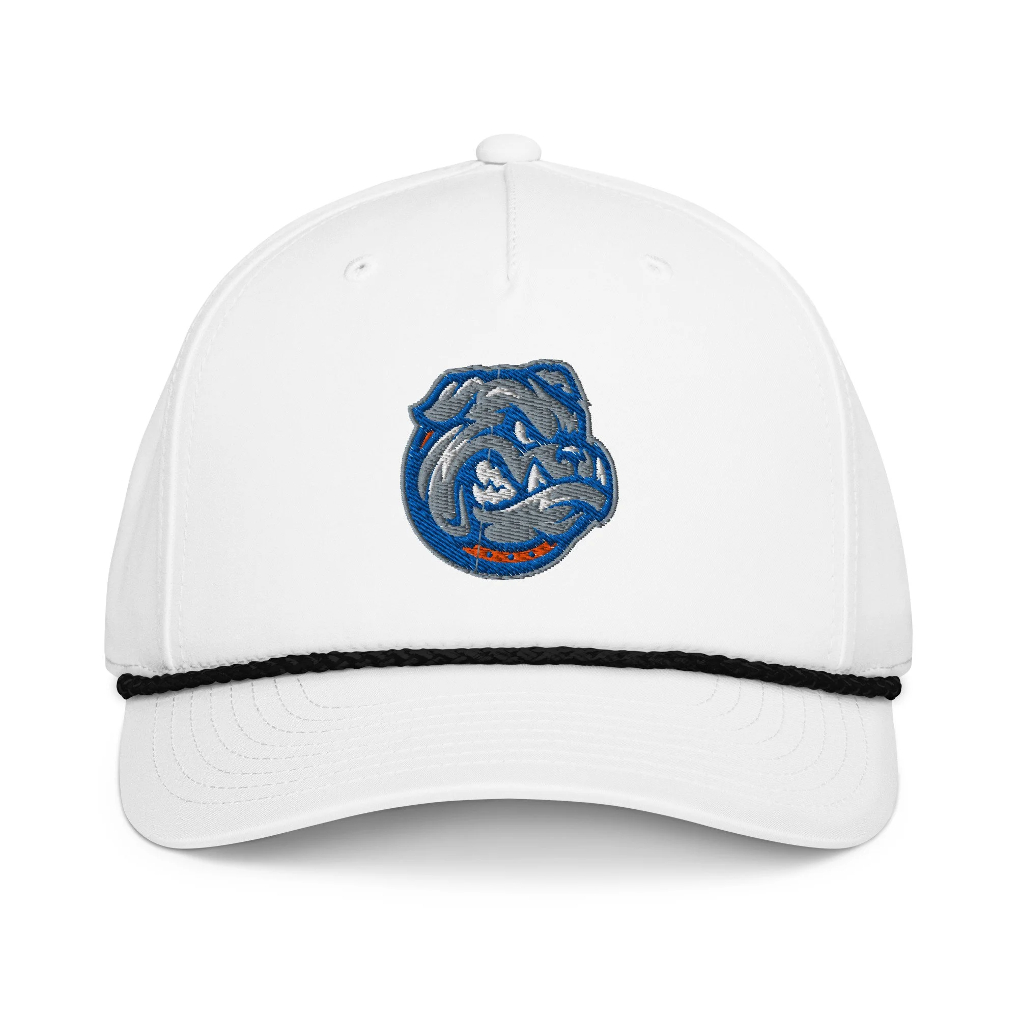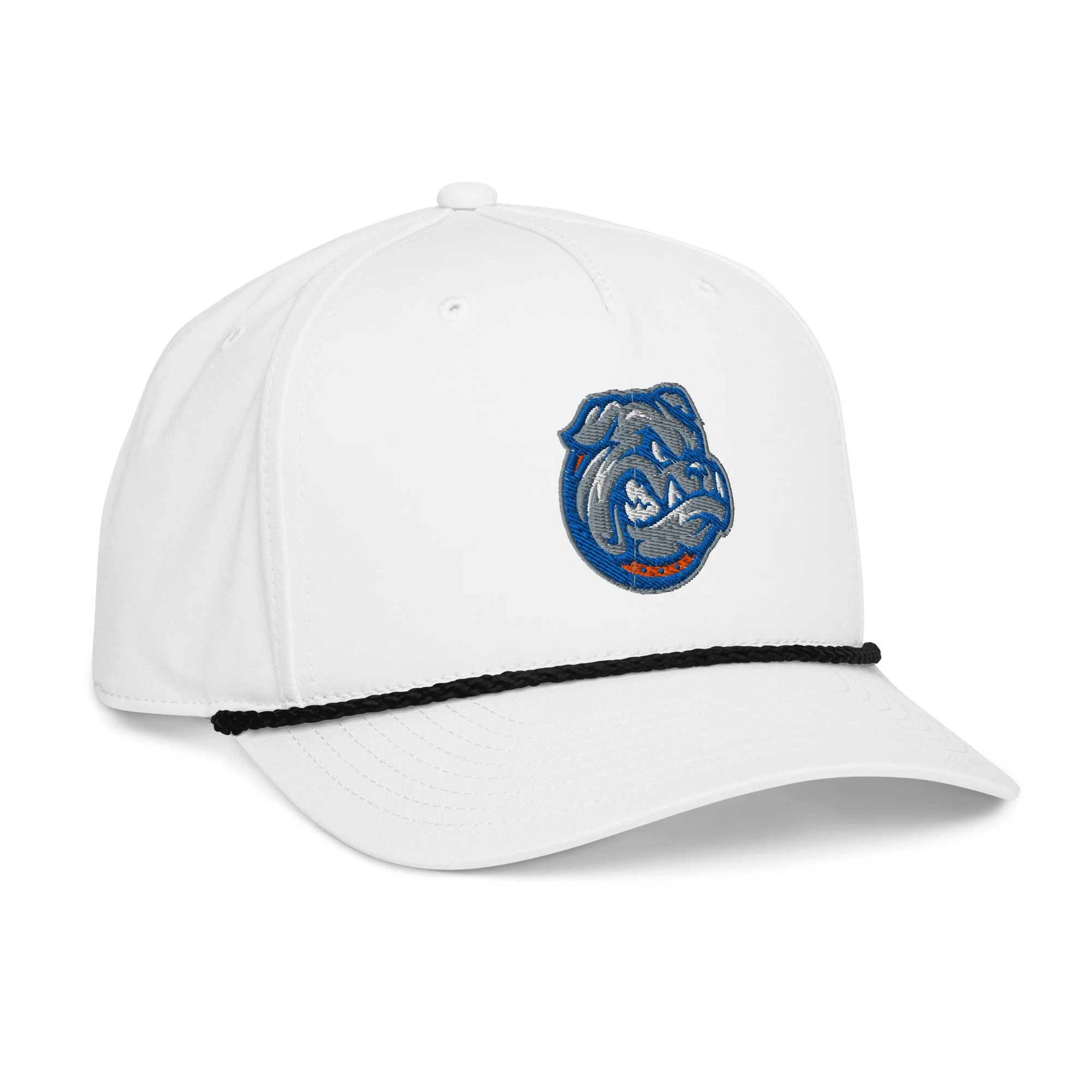 • Braided rope detailing on the bill